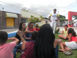 No final da tarde aconteceu uma caminhada cultural, encerrando com uma grande Roda de Capoeira, tendo como anfitiões os mestres Ferreirinha(que mantem uma academia em Guaratinga) e mestre Eudóchio, acompanhados pela professora Aielhe e o seu assitente Bujão.