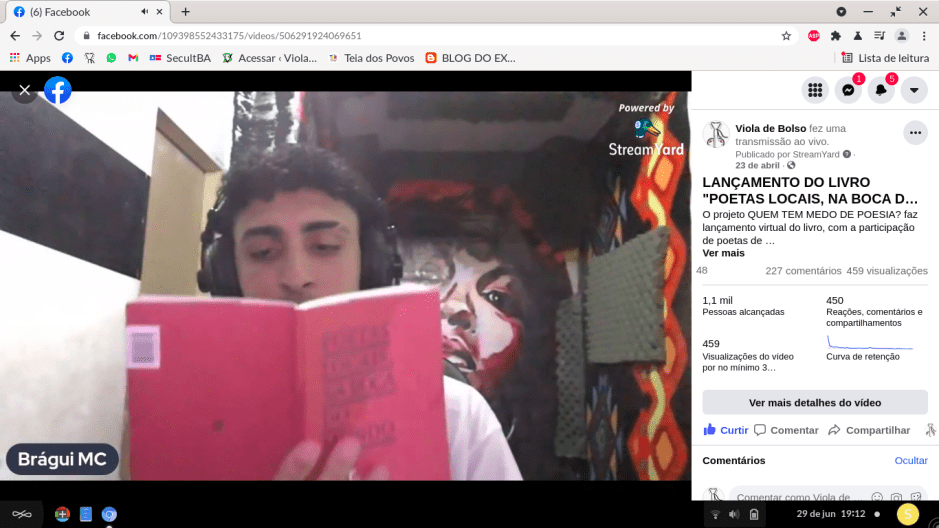 Esse ano o projeto Quem tem medo de poesia? Completou 10 anos de presença ativa no espaço Cultural do Viola de Bolso, mas com a pandemia – curiosamente – o aniversário decenal foi celebrado de forma virtual, projeto agraciado pelo Programa Lei Aldir Blanc na Bahia, através de Edital de Prêmio da Fundação Pedro Calmon(FPC), órgão vinculado à Secult Bahia.
