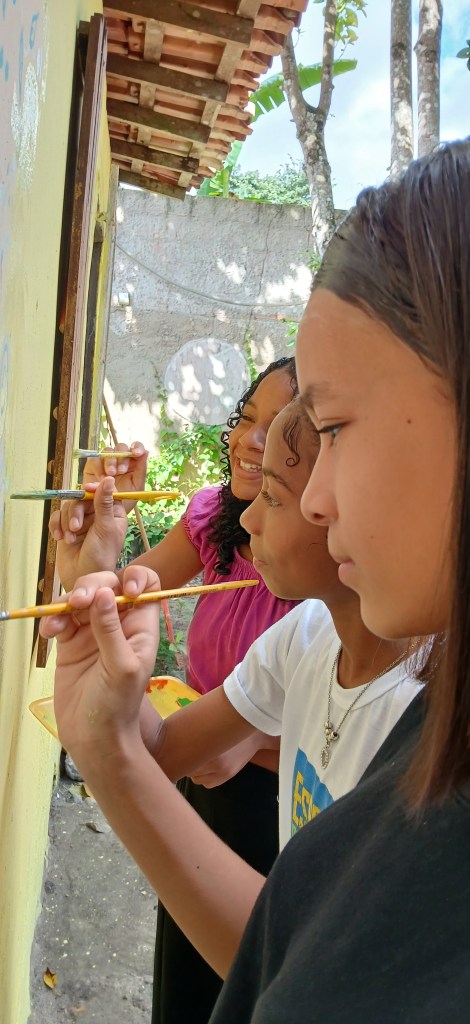 E com singeleza, as meninas flutuaram, não somente as mãos e o pincel, mas o pensamento.